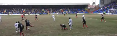On 1 December the Blades returned to winning ways with a late 2–1 victory over former United boss Micky Adams's Port Vale side in the second round of the FA Cup at Bramall Lane. Shaun Miller saved the day for the Blades with a brace in injury time after Vale had taken the lead in the first half.[76] With the Blades beginning to struggle with injuries Jordan Chapell was recalled early from his loan spell at Burton Albion,[77] and returned to the United first-team later that day as the Blades crashed out of the Football League Trophy on penalties to Coventry City.[78] Meanwhile, Matthew Harriott extended his loan deal with Alfreton Town until 6 January[79] and back in the league United returned to winning ways, defeating Carlisle United 3–1,[80] but were held to a 0–0 draw by table-topping Tranmere Rovers the following week.[81] After Danny Coyne extended his short-term contract to keep him with the club until the end of January,[82] United started their festive programme by rising to the top of the League One table following a 2–0 win over Crawley Town on their first ever visit to the Broadfield Stadium thanks to two goals from Tony McMahon,[83] before a comfortable 3–0 home win over Scunthorpe United on Boxing Day consolidated their place as league leaders.[84] With injuries and suspensions starting to weaken the first-team United finished the year by slipping to a surprising 2–3 home defeat to bottom club Hartlepool United,[85] a result which saw them drop to second in the table. On 28 December it was announced that due to injuries sustained against Scunthorpe United, Shaun Miller would be out for the remainder of the season and out up to nine months in total with a cruciate knee ligament injury; whilst Neill Collins would be out for around two months with a fractured cheekbone.[86]