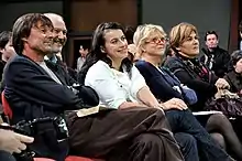The 2011 French Socialist Party presidential primary was the first open primary (primaires citoyennes), jointly held by the French Socialist Party and Radical Party of the Left[6][7][8] for selecting their candidate for the 2012 presidential election. Voters had to donate at least one Euro and sign a pledge to the values of the Left to be eligible.[9][10] The filing deadline for primary nomination papers was fixed on 13 July 2011 and six candidates competed in the first round of the vote. On election day, 9 October 2011, no candidate won at least 50% of the vote therefore the two candidates with the most votes contested a runoff election on 16 October 2011: François Hollande won the primary, defeating Martine Aubry.[11] The idea for holding an open primary to choose the Socialist Party candidate was originally suggested in 2008 by the left-leaning think tank Terra Nova.[12]