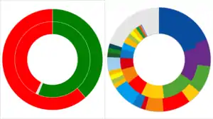Under the constitutional reform package passed in 2010, this election saw LegCo increase its total size from 60 seats to 70 seats, half of which are geographical constituencies (GCs) and half functional constituencies (FCs). The GC seats are returned by universal suffrage, with the Kowloon West constituency once again returning five seats, while the Hong Kong Island, Kowloon East, and New Territories West constituencies each gain one new seat and New Territories East, the second largest constituency, gaining two extra seats.[7] The election uses a system of party-list proportional representation, with seats allocated by the largest remainder method using the Hare quota as the quota for election.