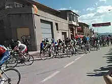 Omega Pharma–Quick-Step then assumed the leadership of the peloton, looking to help with Levi Leipheimer's bid for the overall race as a whole; in a reverse to what occurred at Paris–Nice earlier in the month where Movistar Team initiated the pace when Leipheimer fell three times during the penultimate stage.[21] The breakaway's gap out front quickly dwindled, and were caught with over 40 km (24.9 mi) left to travel in the stage.[16][17] This allowed for the Alt dels Angels, a first-category climb 14 km (8.7 mi) from the end,[22] to take a greater presence in the stage's running, increasing the chances of riders going off the front to attack. After Leipheimer and Tejay van Garderen (BMC Racing Team) made failed bids to get away,[16] three riders – Lampre–ISD's Damiano Cunego, Garmin–Barracuda rider Dan Martin and Matteo Carrara of Vacansoleil–DCM – went clear on the descent and held station off the front until the closing stages.[17] A reduced peloton contested the sprint in Girona; Bradley Wiggins tried to set the sprint up for his Team Sky team-mate Rigoberto Urán,[23] but Albasini surprised the field by accelerating clear in the finishing straight and picked up his second successive stage victory.[24] Urán finished third behind Omega Pharma–Quick-Step's Dario Cataldo.[23]