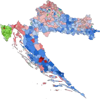 Despite opinion polling predicting a decisive victory of the governing centre left SDP-led coalition, the centre right HDZ-led coalition won a razor-thin plurality of the vote.[4] The turnout of just 20.8% was the lowest turnout in a national election in modern Croatian history.[5]
