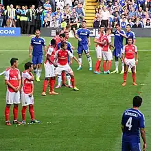 Arsenal defending a free-kick against Chelsea at Stamford Bridge on 5 October