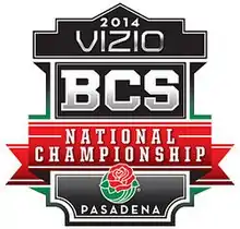 The 2014 Vizio BCS National Championship Game was the national championship game of the 2013 college football season, which took place on Monday, January 6, 2014. The game featured the Auburn Tigers and Florida State Seminoles.[5] It was the 16th and last time the top two teams would automatically play for the Bowl Championship Series (BCS) title before the implementation of a four-team College Football Playoff system.[6] The game was played at the Rose Bowl Stadium in Pasadena, California, kicking off at 8:30 p.m. ET. The game was hosted by the Pasadena Tournament of Roses, the organizer of the annual Tournament of Roses Parade and the Rose Bowl Game on New Year's Day. The winner of the game, Florida State, was presented with the American Football Coaches Association's "The Coaches' Trophy", valued at $30,000.[7] Pre-game festivities began at 4:30 p.m. PT. Face values of tickets were $385 and $325 (end zone seats) with both teams receiving a total of 40,000 tickets.