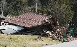 In the Oide district of the Hakuba village near the epicenter and where most ground ruptures were observed, no damage was observed. Instead, damage was observed in the Horonouchi and Mikkaichiba areas which were apparently 3 kilometers south of the epicenter. Some have speculated that the reason why damage was mostly concentrated in Horonouchi was due to soft ground and sedimentary rock in the area, but some speculate that it was due to its location between complex displacement zones.[6]