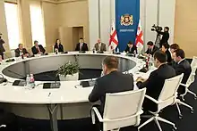 - ↑ "GD Retains Majority Group in Parliament". Civil Georgia. 7 November 2014. Retrieved 24 December 2014.
