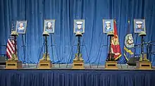 On August 15, during a speech at a memorial for the victims, he called for a review of domestic security procedures for military installations across the country.[66] On August 29, the Navy launched an official investigation looking into possible security changes, communications with law enforcement and emergency responders, and on-site personnel response. The investigation is headed by a twenty-person team, which submitted a 41-page report on September 26.[7][86][87] Though the Marine Corps ruled out arming recruiters as a security measure since most of their job is to interact with the public,[7] officials have begun developing other options.[88]