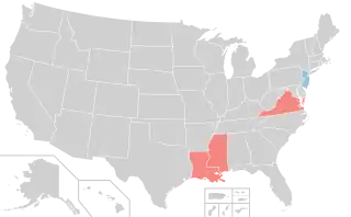 Republicans maintained control of both chambers of the Louisiana, Mississippi, and Virginia legislatures, while Democrats maintained control of the New Jersey General Assembly. This is the last time no state legislative chambers changed partisan control.