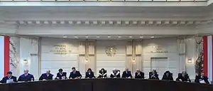 On 8 June the FPÖ announced that they would contest the outcome in the Constitutional Court. Between 20 and 23 June the Constitutional Court questioned some 90 witnesses, mostly election officials from district election commissions.[78] A ruling by the Constitutional Court was expected before 8 July, determining whether to organize a repeat vote in certain regions. Because of the complexity of the FPÖ's lawsuit, it also had been possible that ruling could come after 8 July. As a consequence, Alexander Van der Bellen's inauguration was to be postponed until a later date.[79]
