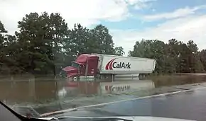 Flooding began in earnest on August 12. On August 13, a flash flood emergency was issued for areas along the Amite and Comite rivers.[11] By August 15, more than ten rivers (Amite, Vermilion, Calcasieu, Comite, Mermentau, Pearl, Tangipahoa, Tchefuncte, Tickfaw, and Bogue Chitto) and many more had reached a moderate, major, or record flood stage. Eight rivers reached record levels, including the Amite and Comite rivers.[12]