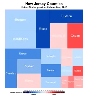 The 2016 United States presidential election in New Jersey was held on Tuesday, November 8, 2016, as part of the 2016 United States presidential election in which all 50 states plus the District of Columbia participated. New Jersey voters chose electors to represent them in the Electoral College via a popular vote, pitting the Republican Party's nominee, businessman Donald Trump, and running mate Indiana Governor Mike Pence against Democratic Party nominee, former Secretary of State Hillary Clinton, and her running mate Virginia Senator Tim Kaine. New Jersey has 14 electoral votes in the Electoral College.[1]