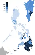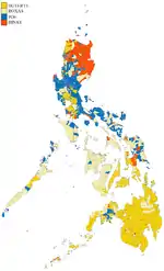 Map showing the official results taken from provincial and city certificates of canvass. The inset shows Metro Manila.