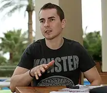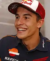 The top-three riders appeared on the podium to collect their trophies and spoke to the media in the subsequent press conference.[34] Lorenzo described his victory as "one of the best of my whole career". He stated his belief a decision made by Yamaha to run the rear soft compound tyre helped him, "The harder compound should become better and better, but I think what happened was the opposite. The softer tyre should get worse and worse, but it was faster and faster so this little difference was the difference between me and Dovizioso and Marquez."[54] Dovizioso spoke of his happiness at finishing second and thanked his team for providing him with a fast bike.[45] He also said his bike's engine allowed him to fend off Márquez in the final laps of the Grand Prix, "It’s always hard to fight with Marquez at the end of the race but my engine really helped me. We did some good testing in the winter and this result continues that work."[54] Third-placed Márquez said he was pleased with his result on a track where Honda traditionally struggled. He highlighted his problem on getting close to Dovizioso and not being able to overtake him for much of the race, "The race was faster than we expected and we had a great weekend, because we got 100% out of our performance at a circuit that we find hard."[54]