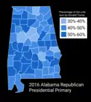 Map showing the results of the 2016 Republican presidential primary in Alabama by county