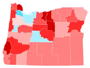 | Yamhill | 19,301 | 39.59% | 23,250 | 47.69% | 6,202 | 12.72% | -3,949 | -8.10% | 48,753 |
