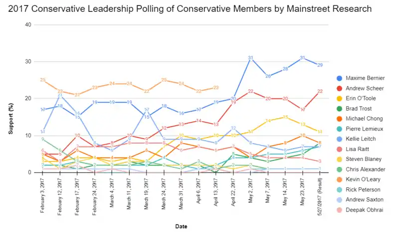 447. iPolitics (May 10, 2017). "Bernier maintaining solid lead in CPC race". Ipolitics.ca. Retrieved July 8, 2017.