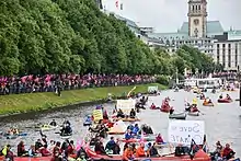 Peaceful demonstration in boats, Binnenalster in Hamburg near town hall (2 July)
