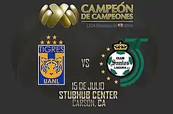 The 2018 Campeón de Campeones was a Mexican football match that took place on July 15, 2018. The match was the fourth edition of the modern Campeón de Campeones, contested by the Liga MX season's Apertura and Clausura champions. The 2018 edition featured Tigres UANL, the Apertura champion, and Santos Laguna, the Clasura champion,[1] at the StubHub Center in Carson, California, hosting for the third consecutive year. Like previous editions, the Campeón de Campeones was contested at a neutral venue in the United States and paired with the 2018 Supercopa MX.[2]