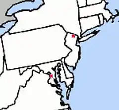 Map showing the two outbreak locations, in Maryland and New Jersey