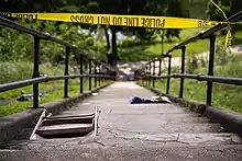 Many encampments received notoriety for shootings, drug use, drug trafficking, sexual assaults, sex trafficking, and other safety concerns.[12][13][11][1][77] Neighbors who lived near park encampments said that regular gunshots were heard in the area of parks.[49] Parks that had encampment sites were left littered with trash, abandoned camping equipment, hypodermic needles, and human waste.[56] After several sexual assaults occurred at encampments, including of minors, volunteers had to move some women and children to secret, non-permitted campsites in other parts of the city.[49][52] By the end of the permit period, four people died had in Minneapolis park encampments, between the time of June 2020 and January 2021.[1] One of the park deaths was a homicide of the 38-year old Sedric Dorman of Minneapolis, who was fatally stabbed inside a tent at Minnehaha Park on January 3, 2021.[78][7] The Minneapolis Parks Police Department tallied 130 incidents of violent crimes such as homicide, rape, and aggravated assault in city parks during 2020 when encampments were permitted in parks, a 41.3% increase compared to the 10-year average of 92 such incidents.[79]