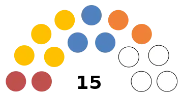 11 of the 15 seats in the National Assembly 6 seats needed for a majority | |||||||||||||||||||||||||||||||||||||||||||||||||||||||||||||||||||||||||||||
