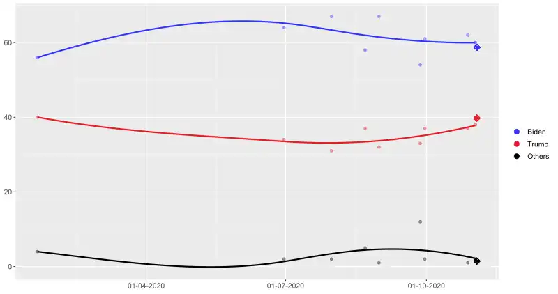 FiveThirtyEight until November 2, 2020 November 3, 2020 58.9% 34.6% 6.5% Biden +24.3