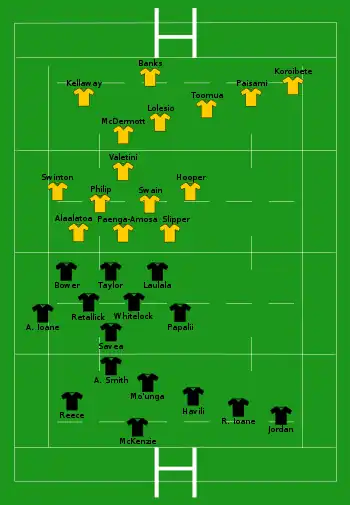 | Try: Fainga'a 49' c White 65' c Banks 78' c Con: Lolesio (1/1) 50' Hodge (2/2) 66', 79' | Report | Try: J. Barrett 16' c Havili (2) 39' m, 60' m Jordan 54' m Lienert-Brown 68' m Bridge 71' m Con: B. Barrett (1/4) 17' Pen: B. Barrett (2/2) 8', 14' |