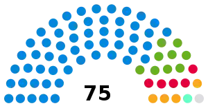 Last election 52 seats, 46.3% 3 seats, 6.0% 11 seats, 20.7%
