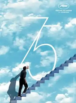 The 75th annual Cannes Film Festival is a film festival that took place from 17 to 28 May 2022.[1] The festival featured a tribute to actor Tom Cruise, whose film Top Gun: Maverick premiered at the festival and where the actor was awarded an Honorary Palme d'Or award on short notice.[2][3] The official poster for the festival was designed as a homage to The Truman Show (1998).[4]
