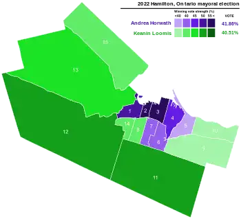 - ↑ Cain, Patrick (October 17, 2022). "Andrea Horwath leads in Hamilton's mayoral race". QP Briefing. Queen's Park Briefing. Archived from the original on October 17, 2022. Retrieved October 17, 2022.