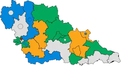 - ↑ Of the fourteen independent councillors prior to the election, ten formed the "Independent" group led by Clive Arthey and four formed the "Independent Conservative" group led by John Ward.