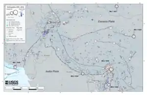 - ↑ Wheeler, R. L.; Rukstales, K. S. (2007). "Seismotectonic Map of Afghanistan and Adjacent Areas" (PDF). Open File Report 2007-1104. United States Geological Survey. Archived (PDF) from the original on 21 January 2022. Retrieved 7 October 2023.