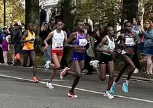 Kenyan runner Sharon Lokedi, who won the previous year's race, her first marathon, with a time of 2:23:23, is planning to defend her title.[10][11] Her compatriot Brigid Kosgei, who previously held the marathon world record after she won the 2019 Chicago Marathon with a time of 2:14:04, is scheduled to run this race as her first New York City Marathon.[12][11][lower-alpha 2] The previous year's runner-up, Israeli runner Lonah Chemtai Salpeter, is also expected to contest the title.[7][8]