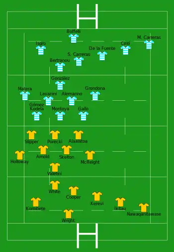 | Try: Ikitau 4' c White 52' c Kerevi 71' c Nawaqanitawase 75' c Con: Cooper (4/4) 6', 53', 72', 76' Pen: Cooper (1/1) 11' | Report | Try: De la Fuente 24' c Montoya 45' c M. Carreras 68' c González 78' c Con: Boffelli (4/4) 26', 45', 69', 80' Pen: Boffelli (2/3) 20', 59' |