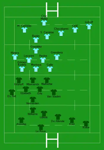 | Try: Etzebeth 18' m de Allende 25' c Libbok 68' c Con: Libbok (2/3) 27', 69' Pen: Libbok (1/1) 11' | Report | Try: M. Carreras 74' m Bertranou 80+2' c Con: S. Carreras (1/2) 80+3' Pen: S. Carreras (3/5) 2', 9', 37' |