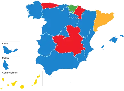 The following table lists party control in autonomous communities and cities. Gains for a party are highlighted in that party's colour.