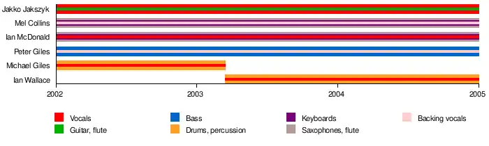 • Michael Giles – drums, percussion, vocals (2002–2003; member of King Crimson 1968–1969, also sessions in 1970 and member of Giles Giles and Fripp)