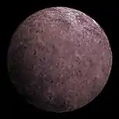 The surface of Gonggong has an albedo (reflectivity) of 0.14.[9] The surface composition and spectrum of Gonggong is expected to be similar to that of Quaoar, as both objects are red in color and display signs of water ice and possibly methane in their spectra.[48][46] The reflectance spectrum of Gonggong was first measured in 2011 at near-infrared wavelengths, with the Folded port InfraRed Echellette (FIRE) spectrograph on the Magellan Baade Telescope at the Las Campanas Observatory in Chile.[49] Gonggong's spectrum exhibits a strong red spectral slope along with broad absorption bands at wavelengths of 1.5 μm and 2 μm, meaning that Gonggong reflects more light at these wavelengths.[49] Additional photometric measurements from the Hubble Space Telescope's Wide Field Camera 3 instrument display similar absorption bands at 1.5 μm,[49] which are characteristic features of water ice, a substance often found on large Kuiper belt objects.[50] The presence of water ice on the surface of Gonggong implies a brief period of cryovolcanism in the distant past, when water erupted from its interior, deposited onto its surface, and subsequently froze.[51]