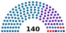 The two largest political parties in Albania are the Socialist Party (PS) and the Democratic Party (PD). The former Communist party rebranded as the Socialist Party would come in second place with 38 deputies. Following is a list of political parties and alliances with representation in the Parliament by the 1992 elections. The Democrats originally held 92 seats. However, due to disruptions between members 6 out of the 92 members of the Democratic Party withdrew from the parties institutions. Lead by former parliamentary group leader Neritan Ceka. He and Arben Imami would go on into created the Democratic Alliance Party.[1] Which would consist of 6 Democrat dissidents. While not just Neritan Ceka. Petrit Kalakulla would ultimately be expelled from the Democratic party where he would go on and create the Right Democratic Party. His explosion was due to the claims he had made during the parliamentary session that it would be more ennobling for him if someone called him a "fascist" than a "communist".[2] In 1994 The Republican party and the Social Democratic party would pull out of the Democratic parties coalition.[3] Some of the Social Democratic party members would go on to create the Liberal Democratic Union which was originally known as Social Democratic Union Party. Which was led by Teodor Laço.[4]