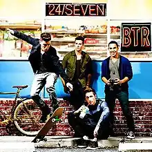 24/Seven is the third studio album by American boy band Big Time Rush, released on June 7, 2013 by Columbia Records. The album experiments with a dance-rock and R&B sound.[1] It also serves as the follow-up to their second studio album Elevate. The band worked with producers Matt Squire and Damon Sharpe, as they had done in the past, in an effort to mature their sound yet not stray away from their well-known qualities. The four members co-wrote 13 songs (including five deluxe edition bonus tracks) with several hired songwriters. It is the last album to be released by the band before going on a long term hiatus in 2014, until they reunited in 2021.