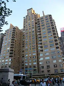 More modern reviewers also praised 240 Central Park South as innovative, even if its design often went unnoticed.[78][84] Paul Goldberger wrote in 1977 that 240 Central Park South, while "often overlooked", had apartments that were "well organized and a far cry from the cramped layouts" of that era.[28] Goldberger also called the building "a remarkably sophisticated design" for its time, with its varied apartment layouts, Broadway storefronts, and park views.[85] In 1980, architectural historian Robert A. M. Stern wrote that the building was a paradigm of the contextually responsible high-rise apartment in Manhattan".[11][18][77] In his subsequent book New York 1930, Stern called the building "a synthetic work that was at once infill and icon", despite what he saw as shortfalls in the building's courtyard and "bland facade".[26] As early as 1996, Stern had suggested that 240 Central Park South was a viable candidate for official landmark status.[86] Martin Filler, writing for The New Republic in 2000, described 240 Central Park South as Columbus Circle's best structure, saying: "This stylish exemplar of high-density urbanism, completed just before civilian construction halted with our entry into World War II, has never been superseded."[87]