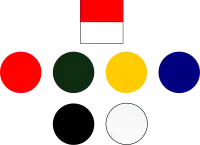 The practice of wearing battalion specific insignia (often called battle patches) in the B.E.F. began in mid 1915 with the arrival of units of Kitchener's Armies and was widespread after the Somme Battles of 1916.[55] The patches shown were adopted by the division during late 1917, and were designed to a brigade scheme including a brigade sign worn by all ranks on the back, below the collar. Those signs for the 92nd and 93rd brigades indicated the battalion seniority, all brigades wore their battalion, M.G. company and T.M. battery signs at the top of both sleeves.[56]