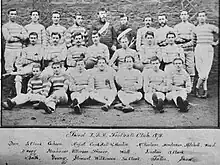 At the time there was one other club in the city, namely the Edinburgh Thistle club.[3] Unlike Thistle, the Volunteers entered the Scottish Cup in 1874–75, losing to Helensburgh 3–0 in the first round, the tie being played at neutral ground in Glasgow.[4] The earliest recorded match for the Volunteers had been at Craigmount grounds in Grange the previous week, a defeat to the Rovers club of Glasgow.[5]