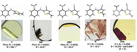 4. 1 2 Yu, Lian (2010). "Polymorphism in Molecular Solids: An Extraordinary System of Red, Orange, and Yellow Crystals". Accounts of Chemical Research. 43 (9): 1257–1266. doi:10.1021/ar100040r. PMID 20560545.