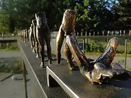 The sculpture was first exhibited at the Folkemødet on Bornholm in 2015,[3] in addition, it has been exhibited at Kulturmødet Mors[4] and Varde Museum.[5] When it was exhibited at Kulturmødet Mors, five of the small figures were stolen.[6] The sculpture has also been exhibited in Taastrup in November 2016, where the exhibition was arranged by Taastrup Kunstforening.[7]