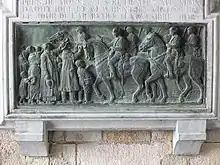 Sculpture at the town hall of Mons to commemorate the liberation of the city by the 5th Royal Irish Lancers on 11 November 1918