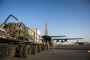 ![]() Squadron airmen loading a C-130 Hercules in Southwest Asia | |
