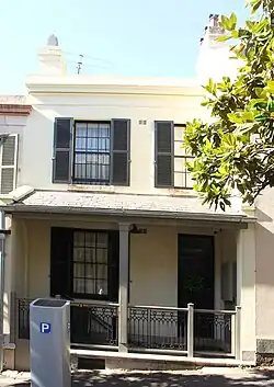 Millers Point is one of the earliest areas of European settlement in Australia, and a focus for maritime activities. One of two Victorian Georgian style terrace houses constructed c. 1860.[1]