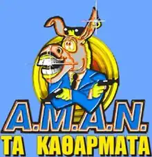 A.M.A.N., was a Greek television parody show and the natural continuation of another TV show called Comfuzio that was aired by ERT3 in the early 1990s. A.M.A.N began after the death of their friend and broadcaster Antonis Pararas and the capital letters translates the word "Αντώνη Μας Άφησες Νωρίς" which means "Antonis you left us early". A.M.A.N. began in May 1997 at Mega Channel, but only 9 episodes were aired. Since October 1997 and up until 2000, the show was broadcast by ANT1 television. The hosts were Antonis Kanakis (Αντώνης Κανάκης) and Sotiris Kalivatsis (Σωτήρης Καλυβάτσης), with a variety of supporting players, most notable Giannis Servettas (Γιάννης Σερβέτας). Spin-offs of the show were the series A.M.A.N. Ta Katharmata (originally an unrelated show to A.M.A.N., but later mutated into a spin-off/continuation of A.M.A.N.), Oi Treis Files, Haivania 3-0 and Giannis o omorfos.