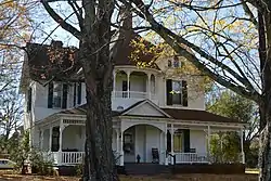 A. P. Terry House is a historic home located at Pittsboro, Chatham County, North Carolina. It was built about 1900, and is a two-story, three bay irregular plan Queen Anne style frame dwelling. It features a wraparound porch and open, second story tower.[2]