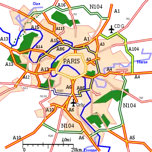 The A104 Autoroute is a French autoroute linking Gonesse (Val-d'Oise) and Collégien (Seine-et-Marne).